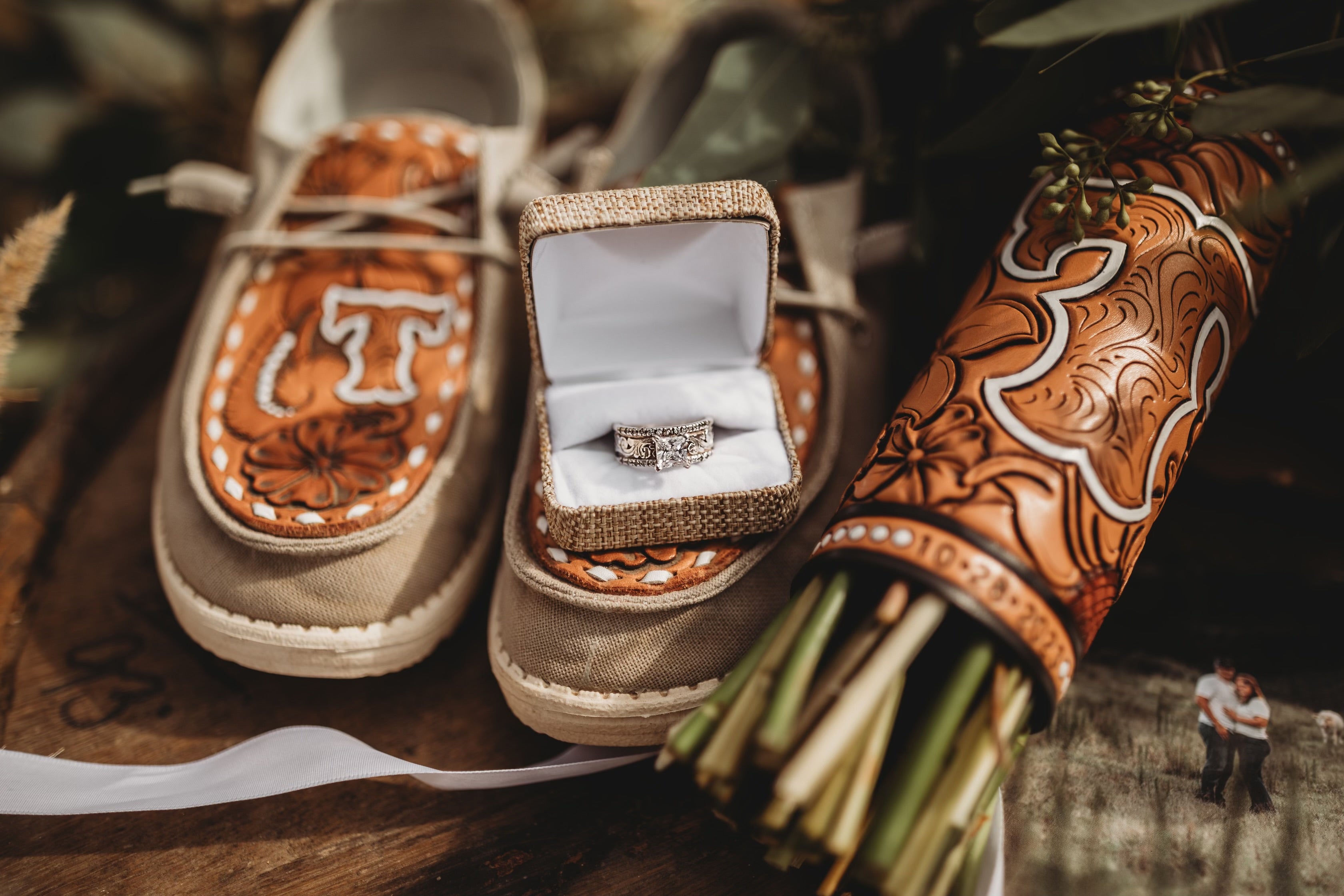 Add a Personalized Touch to Your Big Day with a Custom Bouquet Wrap, Custom Heels, and a Custom Suit Coat